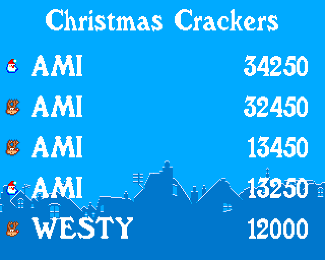 Beim letzten mal hatte ich es leider nicht geschafft. Deshalb "starte" ich diesmal früh. Macht echt Laune das Spiel. Tatsächlich so mit das beste, kleine Weihnachtsspiel, welches ich auf dem Amiga kenne. Schade dass der Highscore nicht gespeichert wird.
